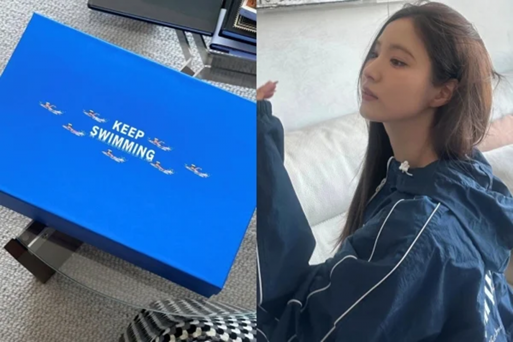 4月4日,演員申世景在社交媒體上發布了一系列令人興奮的照片。她展示了一個特別版禮盒以及為BTS新歌〈SWIM〉打造的團隊服飾。精美的禮盒上印有七個可愛角色在海中游泳的圖案,並配有「KEEP SWIMMING」字樣,完美代表了BTS的七位成員。