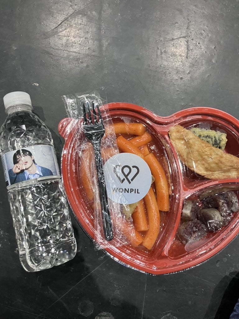 活動中的粉絲每人免費獲得一個午餐盒,內有辣炒年糕、蒸血腸和小份炸物配菜。飯盒和附贈的瓶裝水上都貼有元弼的貼紙。