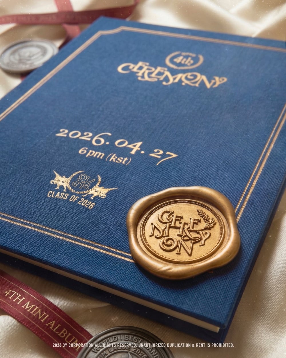 海報以一張飾有金箔細節的畢業證書為特色,專輯名稱和發行日期以優雅字體書寫。圖像暗示著一個象徵性的轉變,表明QWER將透過這次發行結束他們的第一篇章,邁入新階段。專輯名稱意為「儀式」,進一步強化了改變與前進的主題。