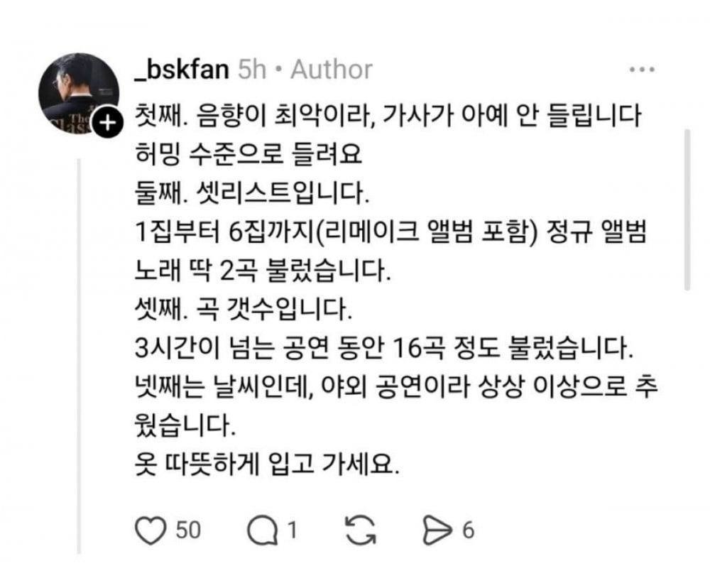 歌手朴孝信近日舉行的演唱會,在觀眾間引發了兩極評價,許多人指出音質、歌單編排及整體製作存在問題。