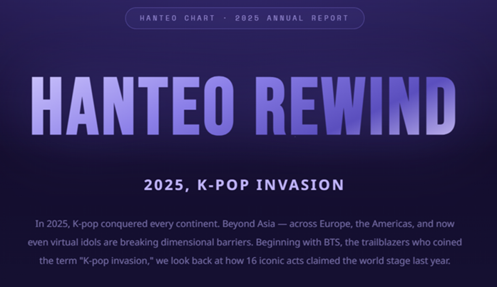 Hanteo Chart 發佈了年度報告「Hanteo Rewind: 2025」,展示了K-pop藝人在2025年的表現。