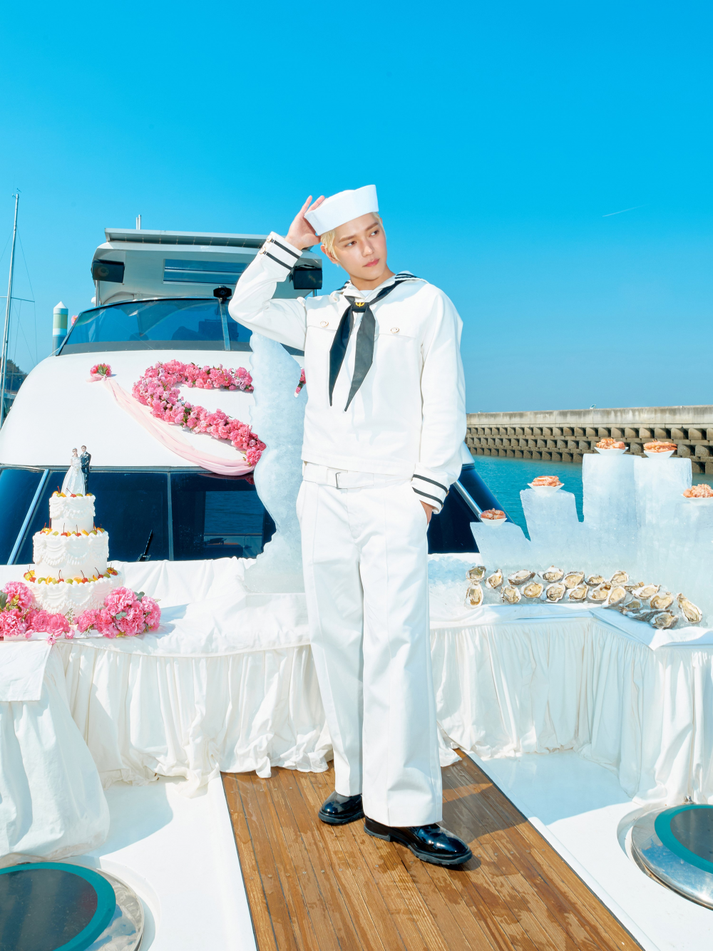 韓國時間4月14日凌晨,這位歌手為即將推出的新歌《Rock Solid (feat. Anderson .Paak)》發布了一組全新的預告照片。泰容身穿經典的白色制服,化身為一名水手,準備駕駛名為「FLOWER」的船隻揚帆出海。