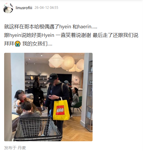 NewJeans 成員 Haerin、Hyein 及 Hanni 被目擊現身丹麥哥本哈根,引發外界對她們即將回歸的猜測。根據韓國時間4月14日確認的報導,ADOR 承認成員們正與製作團隊一同造訪這座丹麥首都。消息最初是在社交平台微博上,有照片顯示 Haerin 和 Hyein 在當地商店查看專業拍攝器材後開始流傳。雖然最初的目擊焦點在兩位成員身上,但後續查證確認 Hanni 也參與了此次正式行程,證實共有三位成員在當地。
