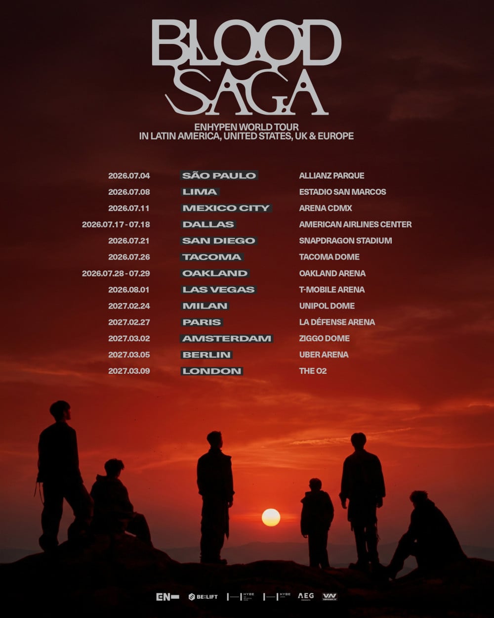 在5月1日於首爾KSPO DOME以三場售罄的演出揭開巡演序幕後,團體將於今年夏天首次將「BLOOD SAGA」帶到拉丁美洲,造訪聖保羅、利馬和墨西哥城。隨後巡演將繼續在美國進行,前往達拉斯、聖地牙哥、塔科馬、奧克蘭和拉斯維加斯。