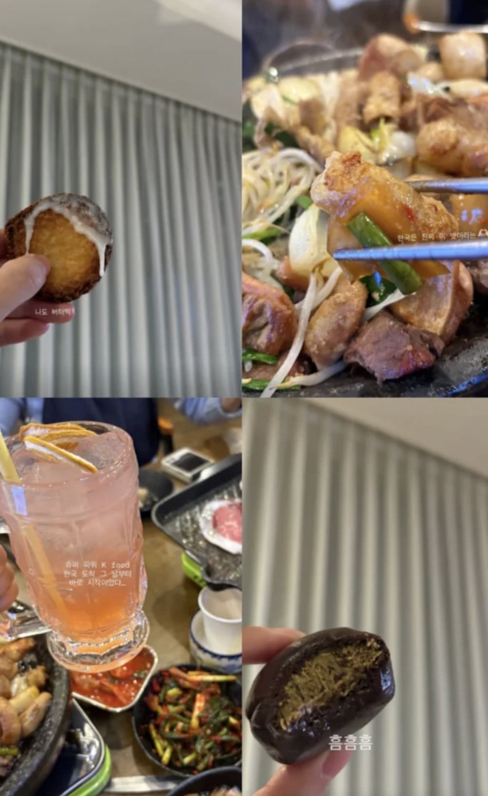 她分享了一張近期流行的牛油年糕照片,並寫道「我也要」,吸引了大家的注意。同時,她透過寫下「這才是韓國真正的味道」來表達對烤牛腸的喜愛。她還上傳了一段短片,片中她咬了一口在杜拜享用過的煙韌曲奇,並配上俏皮的反應。