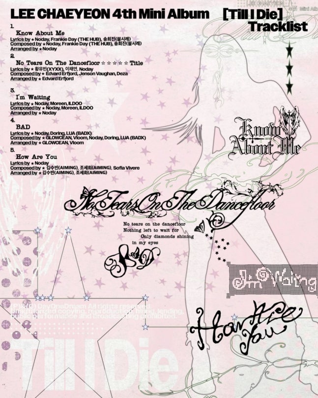 其所屬經紀公司DayOneDream於4月15日下午6時透過官方社交媒體公開了李彩演第四張迷你專輯《Till I Die》的曲目列表圖片。