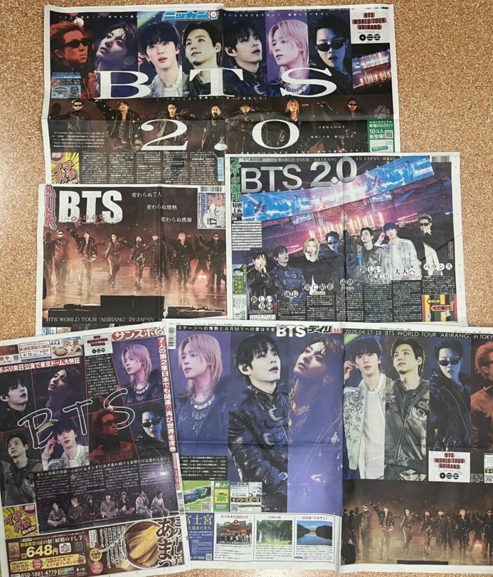 BTS 於4月17日至18日在東京舉行萬眾期待的世界巡迴演唱會「ARIRANG in Tokyo」,其後強勢佔據日本各大體育報紙的頭版。包括《日刊體育》、《SpoNichi》、《體育報知》、《產經體育》及《Daily Sports》等主流報刊均以顯著篇幅報導,突顯了當地的高度關注。