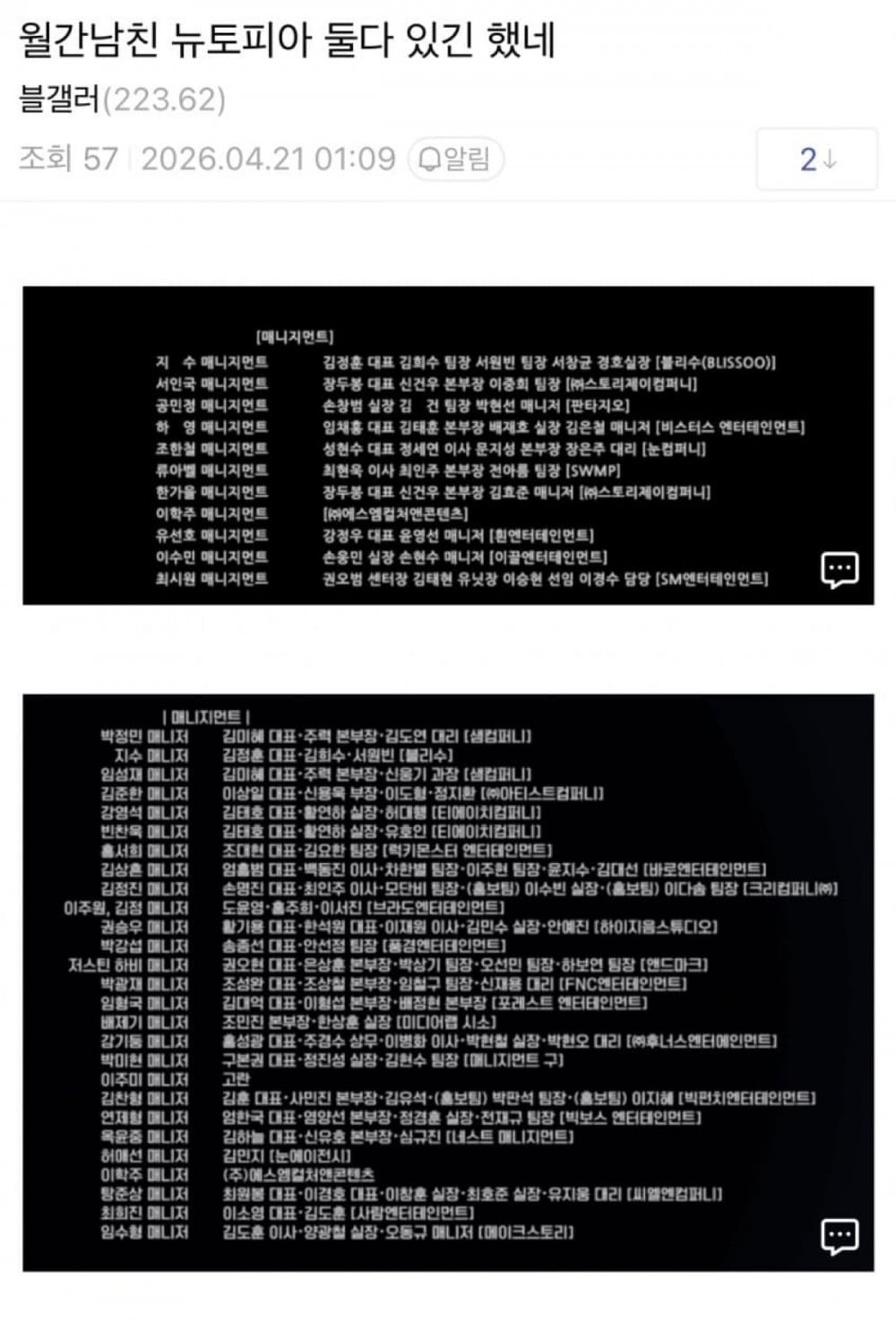 相關資料目前已更新為BLISSOO娛樂。但據悉相同署名仍存在於《Newtopia》製作名單中,持續引發猜測。