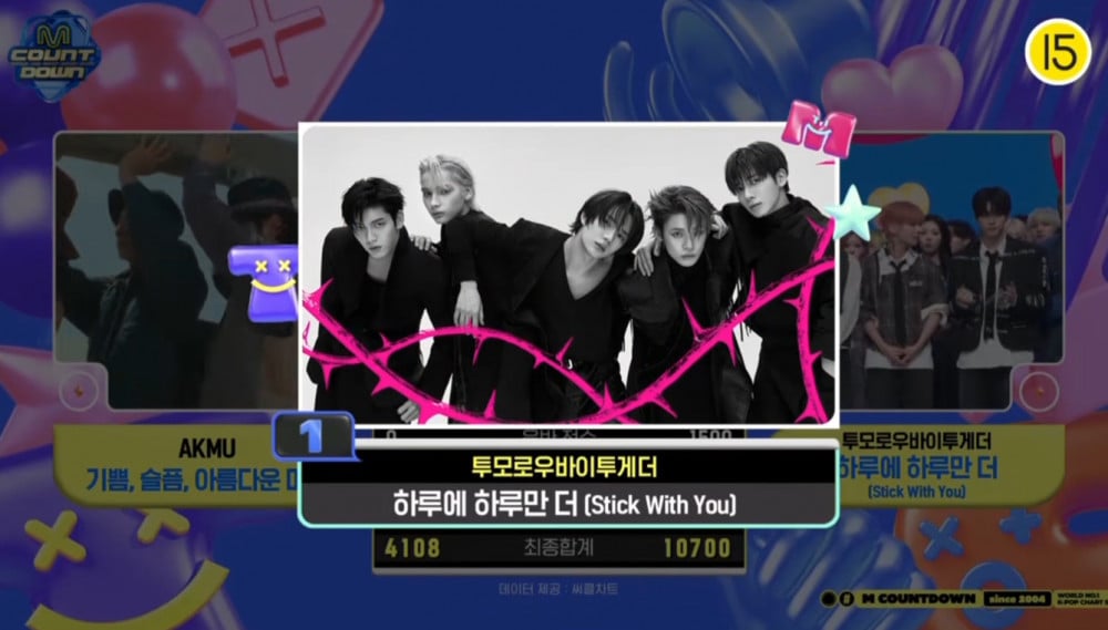 在4月24日播出的《M! Countdown》中,Tomorrow X Together(TXT)憑《Stick With You》奪得第一名,為這次回歸拿下第二個音樂節目冠軍。