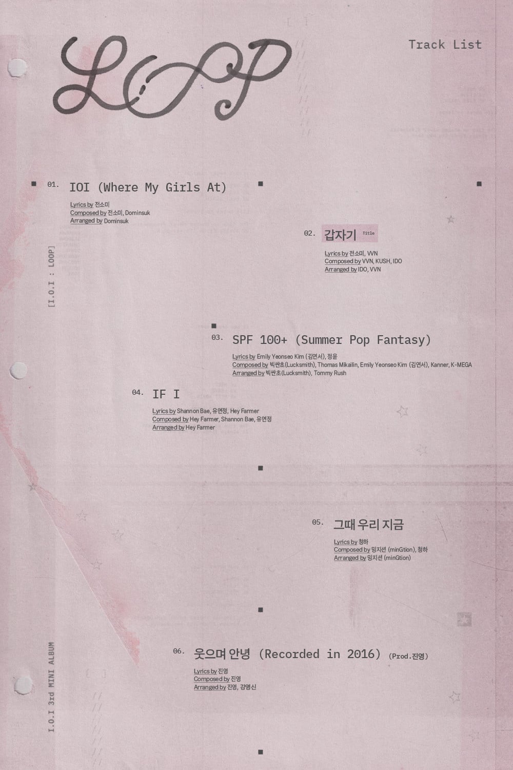 4月27日韓國時間,I.O.I公開了他們久違回歸項目《LOOP》的曲目列表海報。