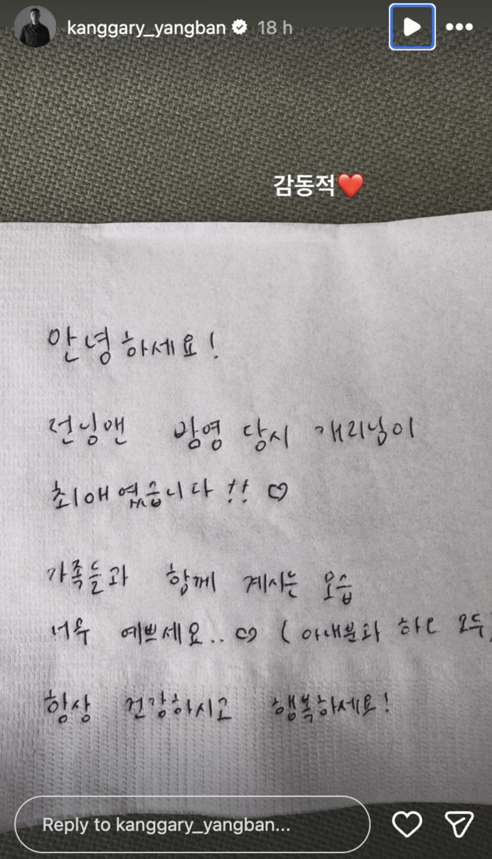 Leessang 前成員 Gary 收到一封感人的手寫信後,與粉絲分享暖心時刻。