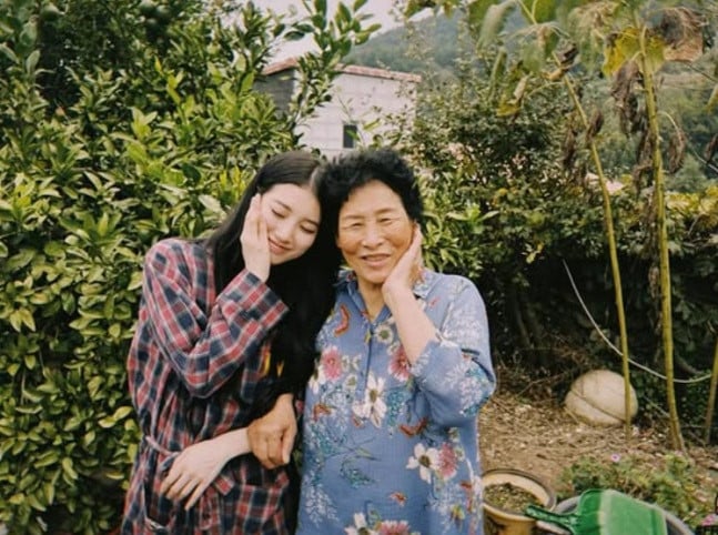 公開的照片中,Suzy趁拍攝地點鄰近祖母家時抽空與奶奶溫馨合影。