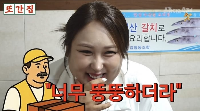 在「Studio Suje」頻道最新上傳的〈重複餐廳〉影片中,Poongja前往當地商家推薦的燉帶魚與烤青花魚專賣店。點餐後她開心地詢問鄰桌客人:「阿姨們來過這裡幾次了?」