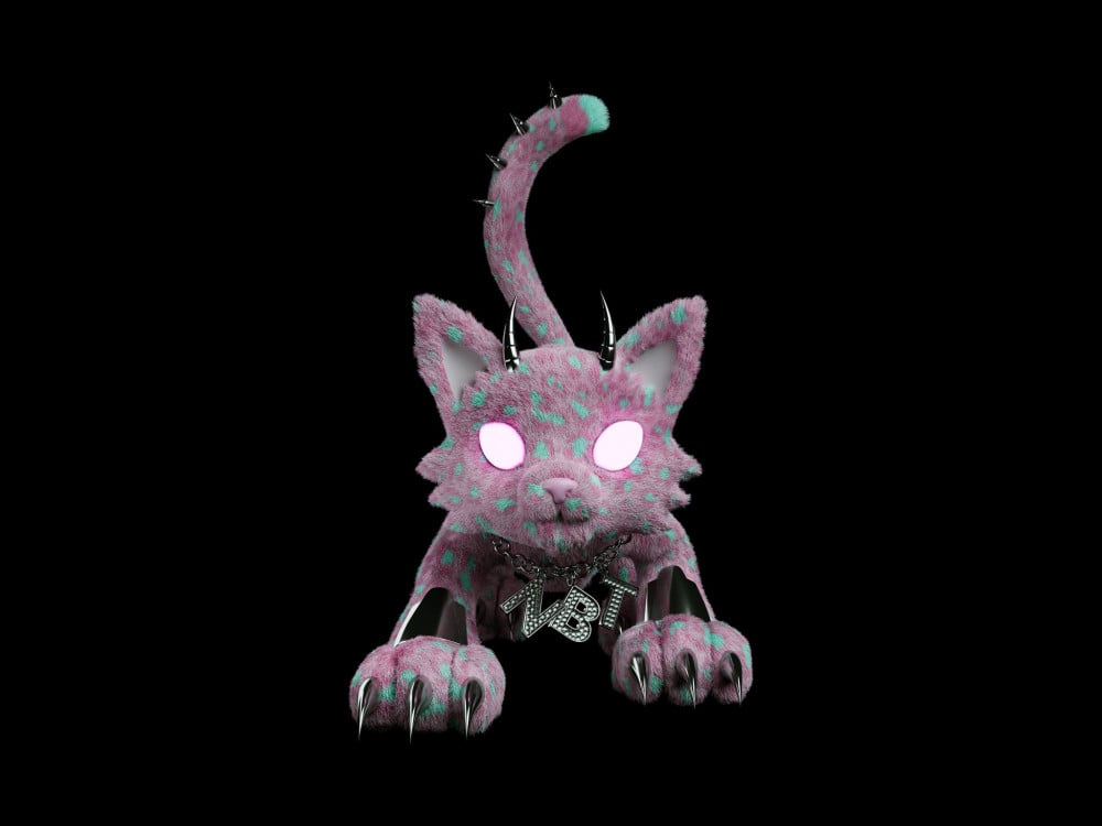 照片中呈現風格化且具侵略性的貓形輪廓,頸部懸掛著拼出「NBT」字樣的吊墜——此為團體 NEWBEAT 的縮寫。