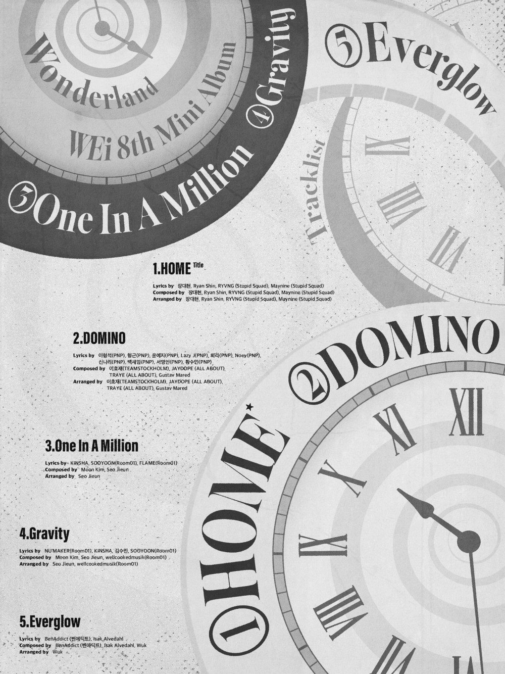 韓國時間10月8日,WEi公開了第八張迷你專輯《Wonderland》的歌曲列表海報。