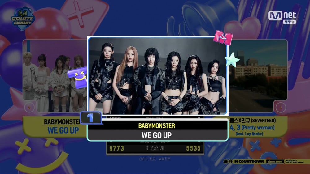 在10月16日播出的Mnet《M! Countdown》中,BABYMONSTER憑新曲《WE GO UP》奪得出道後首個音樂節目冠軍。