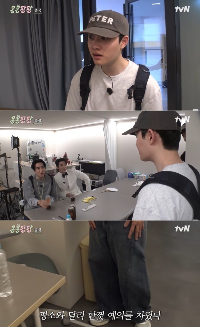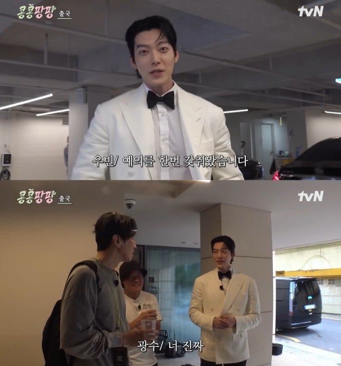 接著登場的金宇彬從頭到腳身著全套西裝搭配領結,彷彿要參加青龍電影獎而非前往機場。他優雅表示:「為配合節目新一季,我想在旅行前向觀眾展現最佳禮儀,畢竟感覺正式開始旅程後就無法保持形象了。」