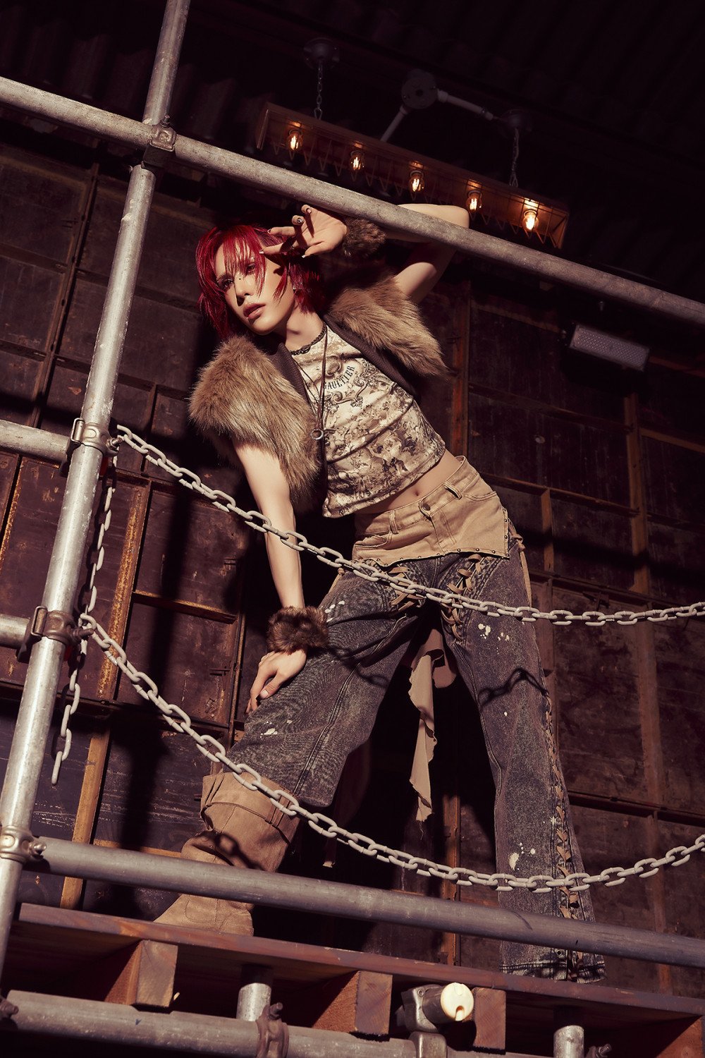 最新公開的照片中,Wumuti 以暖秋色調驚艷亮相,熾烈紅髮搭配皮草波蕾羅背心格外吸睛。