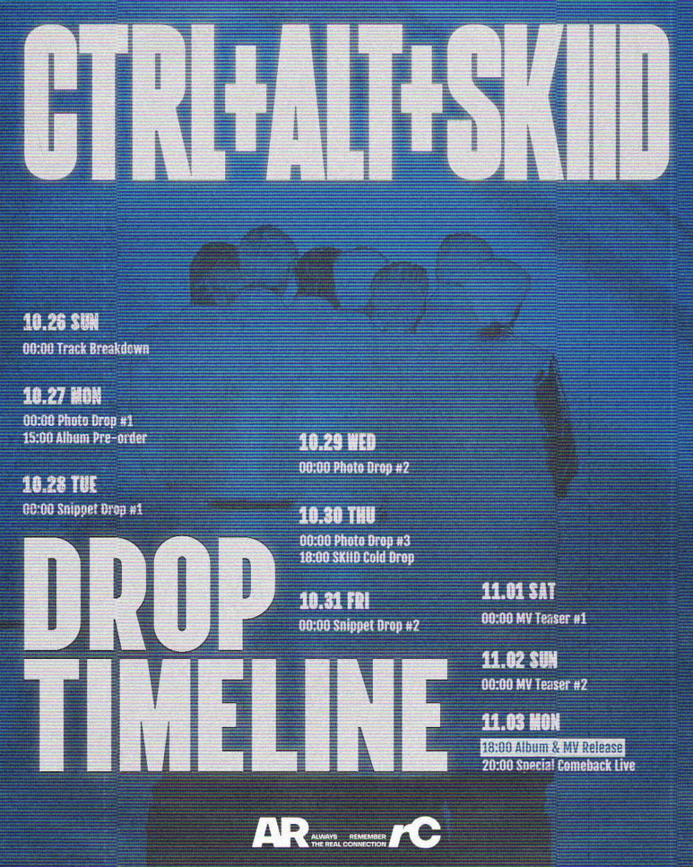 如下方的團體回歸時間表所示,ARrC 第二張單曲專輯《CTRL+ALT+SKIID》的預告將於10月26日以曲目介紹揭開序幕。接下來一週,ARrC 將陸續公開一系列照片及音源片段預告,隨後釋出多支MV預告,最終在11月3日下午6點(韓國時間)正式發行《CTRL+ALT+SKIID》。