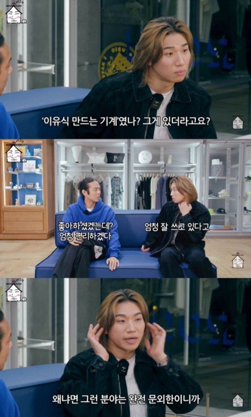 當Beenzino回答「其實不需要什麼」時,大聲俏皮提議:「那準備典禮用的石頭怎麼樣?」,Beenzino幽默回應:「要送就送石頭吧」,引發兩人爆笑。