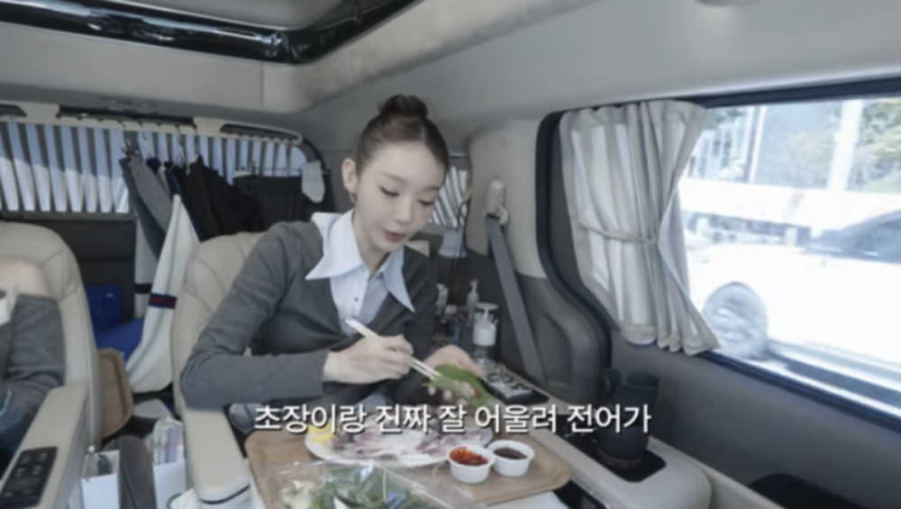 她的「車內美食清單」涵蓋糖餅、蟹肉拌飯、鰻魚飯、墨西哥捲餅及海膽冷盤刺身。結束大學與企業活動後,她終於在餐廳享受完整大餐——包括泡菜捲、魷魚刺身、石斑魚及海鮮炸醬麵。