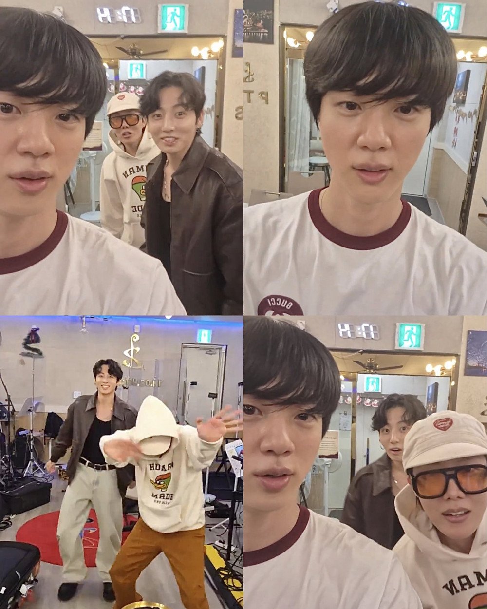 Jin在直播中透露想與粉絲交流共度時光,首度公開個人工作室。當J-Hope與Jungkook突然從Jin身後驚喜現身時,直播氣氛瞬間沸騰。兩人展現一貫活潑魅力,互相嬉鬧跳舞的畫面,即使僅短暫露面仍引爆全球粉絲熱議。