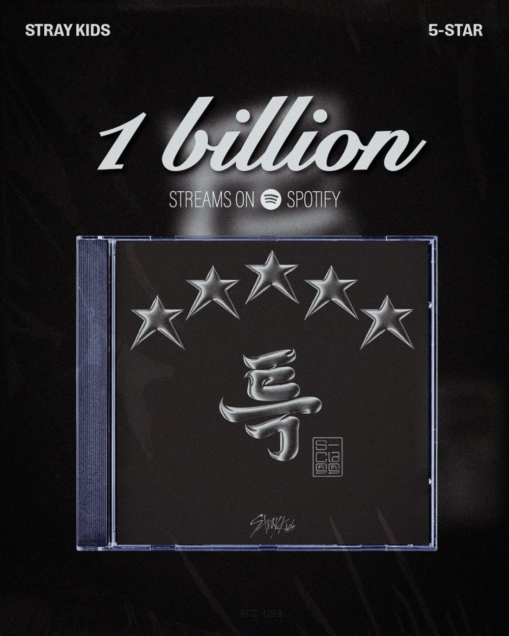 Stray Kids再度創下重要串流里程碑!團體於2023年發行的正規專輯《★★★★★ (5-STAR)》正式在Spotify突破總串流量10億次,成為他們第四張達成此成就的專輯。