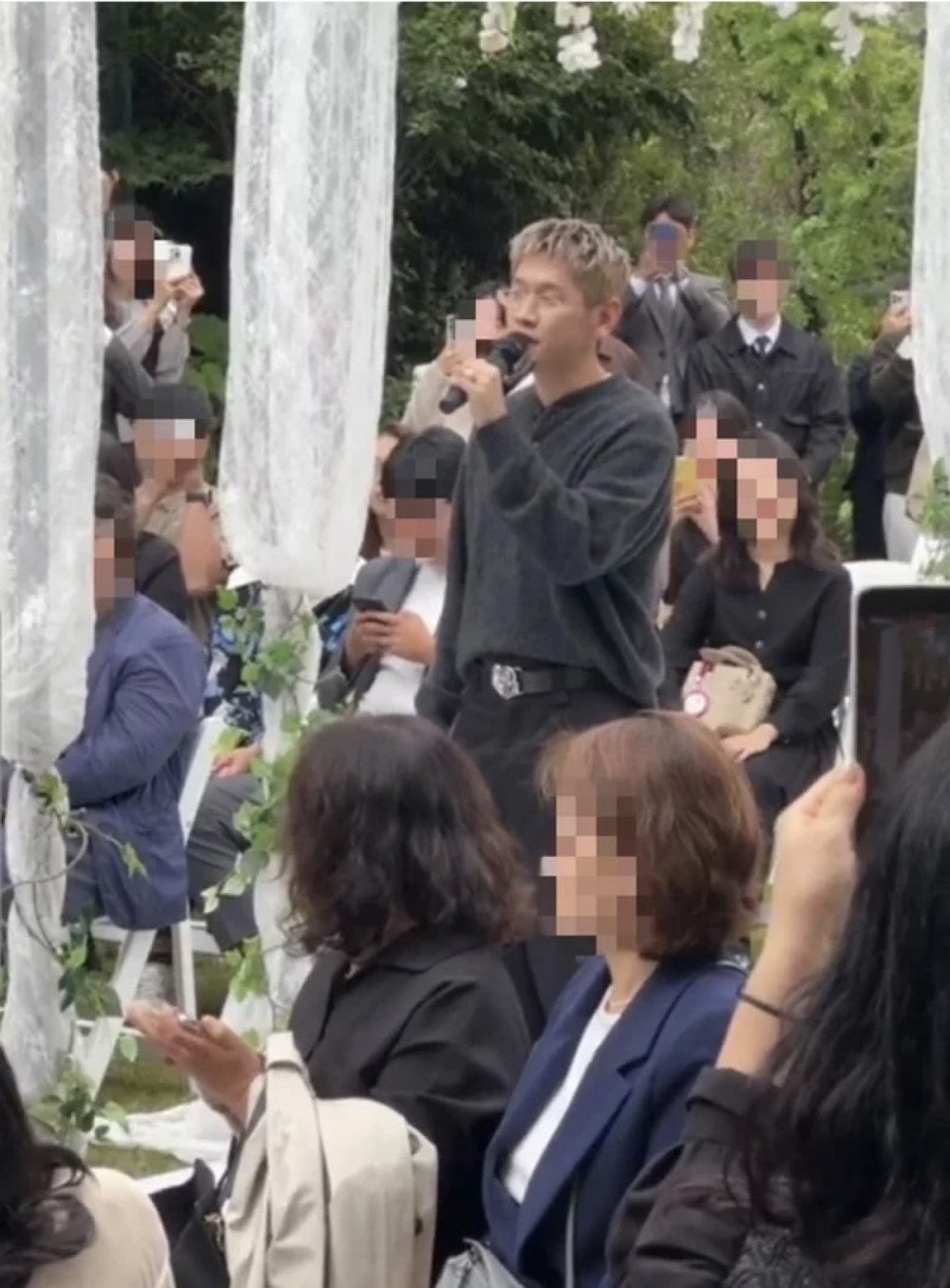 近日網路社區出現題為《看Crush在Joy姐姐婚禮上唱歌的模樣》的帖子,公開了10月19日韓國時間舉行的婚禮現場照片。畫面中Crush手持麥克風,在賓客席間深情獻唱。