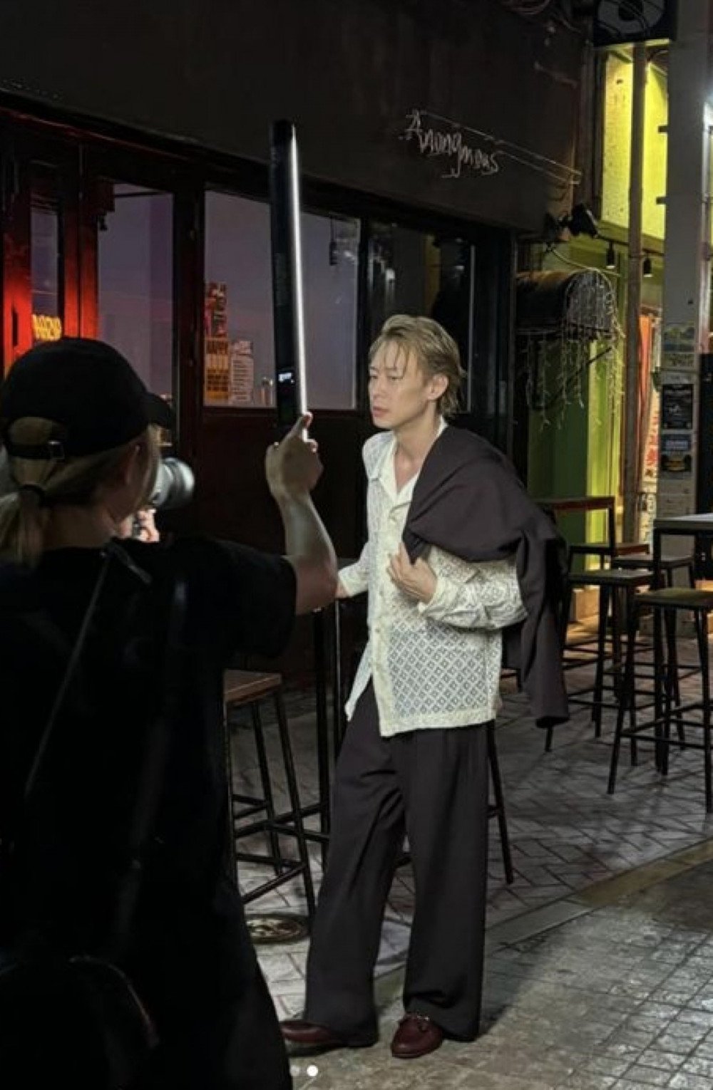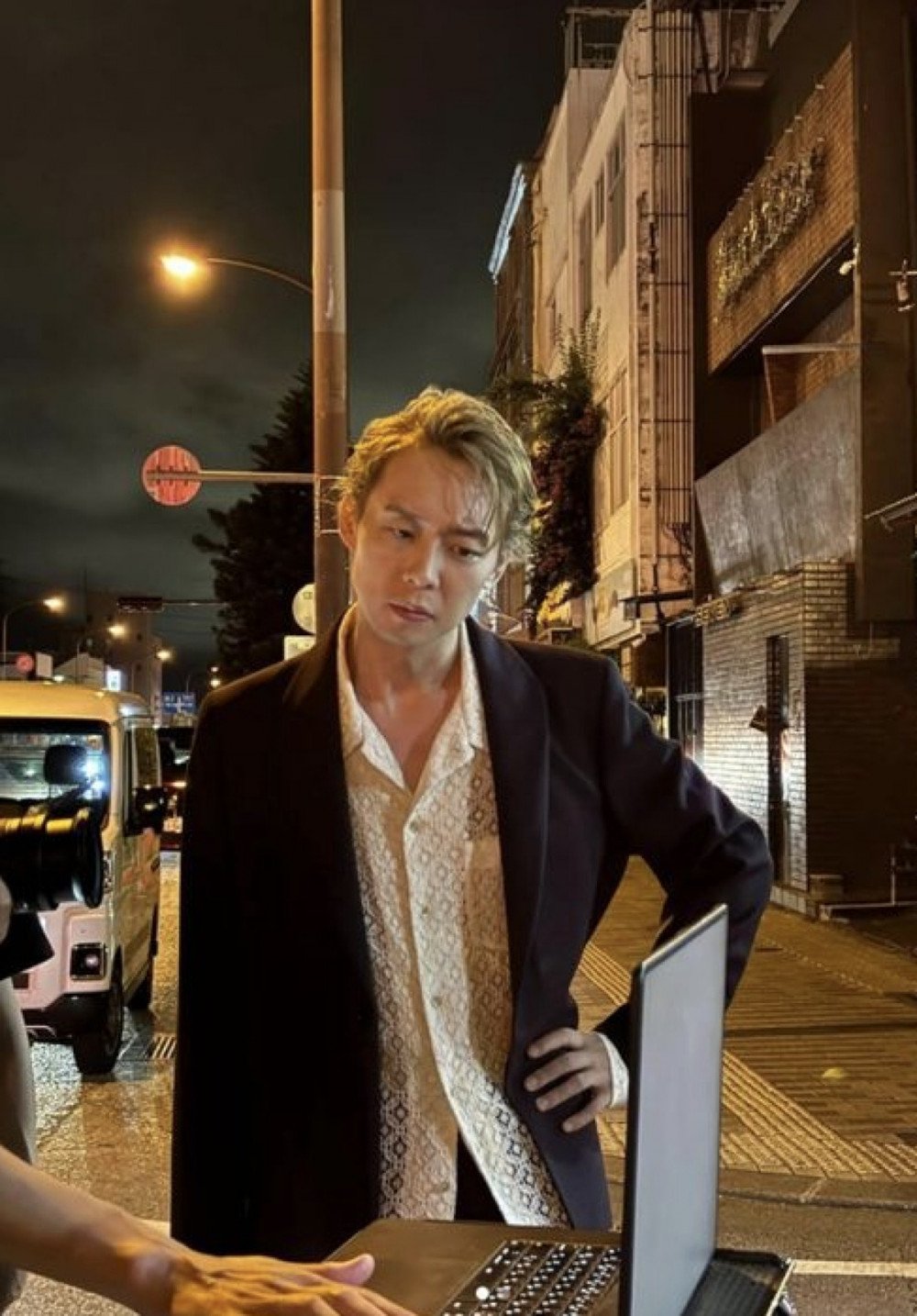 在公開的照片中,朴有天以沖繩夜景街道為背景擺出姿勢,正專注進行拍攝。他穿著飾有蕾絲細節的白襯衫、黑色長褲與外套,散發著認真投入的氛圍。部分照片中他帶著同樣專注的神情在筆記型電腦上確認影像,特寫鏡頭則仔細捕捉到他嚴肅的表情。