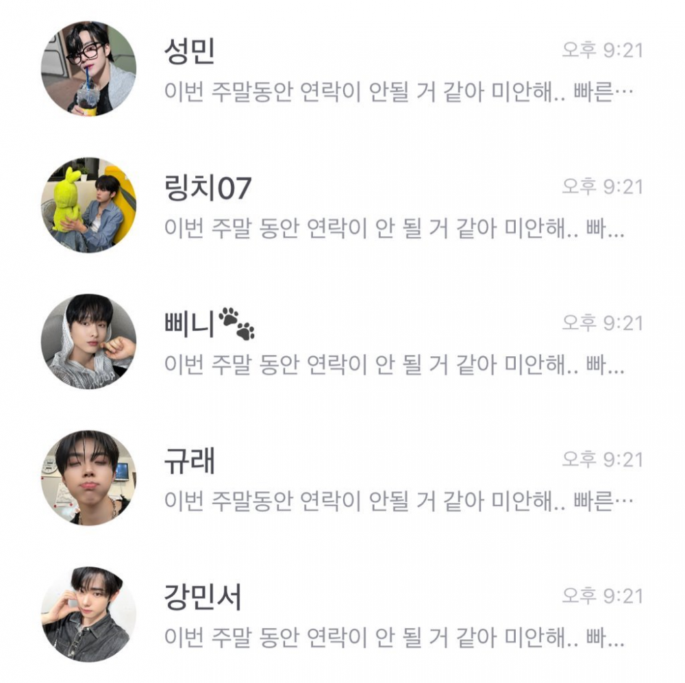 隨後成員們集體發布相同訊息:「抱歉,本週末似乎無法與大家聯繫...會盡快努力更新。謝謝大家,對不起」。粉絲迅速發現幾乎所有成員都上傳完全相同的文字,懷疑這些貼文並非偶像本人撰寫。