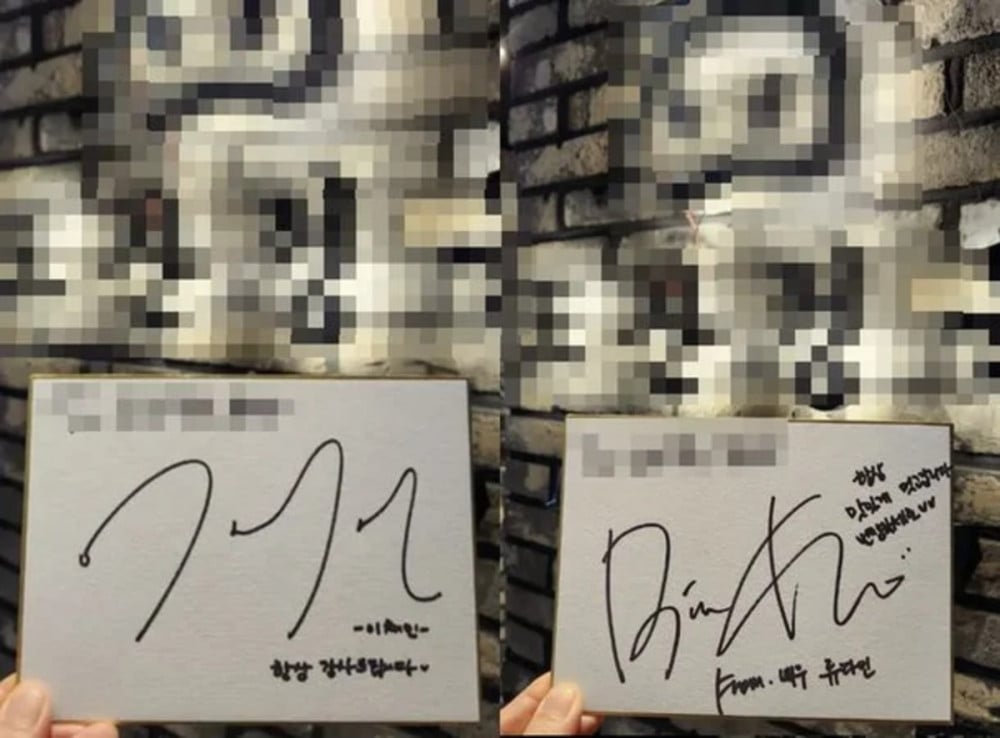 李宰民寫下:「總是感謝您」,而柳多仁則留下甜蜜字句:「這裡的餐點總是令人愉悅,祝願生意興隆。」