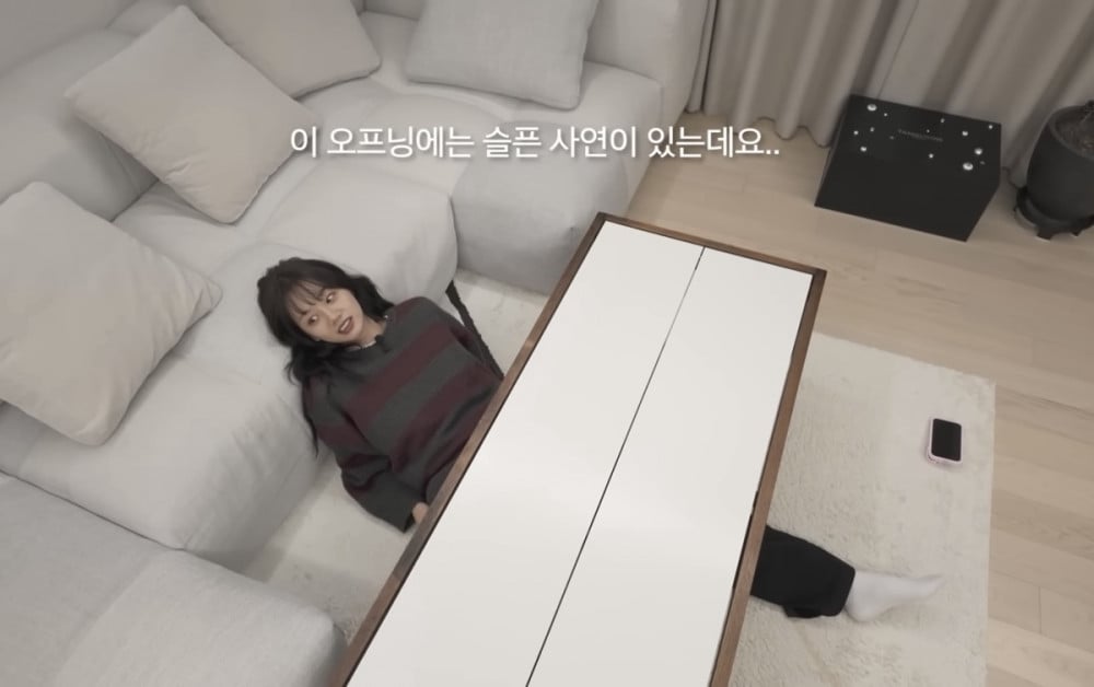 在開場畫面中,Hyeri蜷縮在客廳茶几下方。她坦言:「當時真的好想小睡片刻,連走回臥室的力氣都沒有,直接在客廳睡著,但光線太刺眼了。最後鑽到桌子底下睡,半夜醒來時自己都嚇了一跳」,解釋了這段特別的開場。