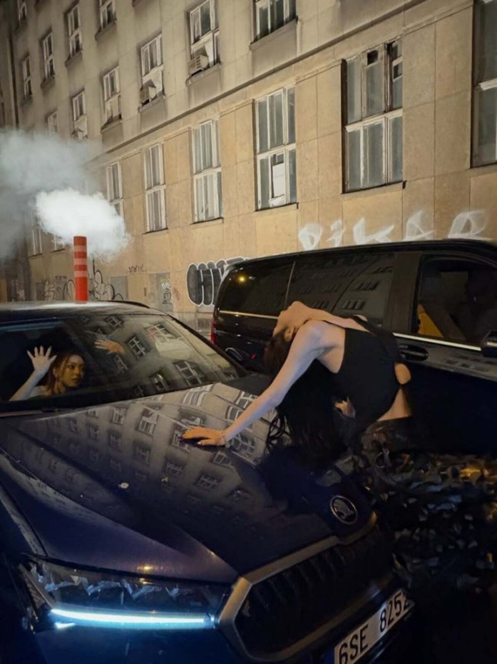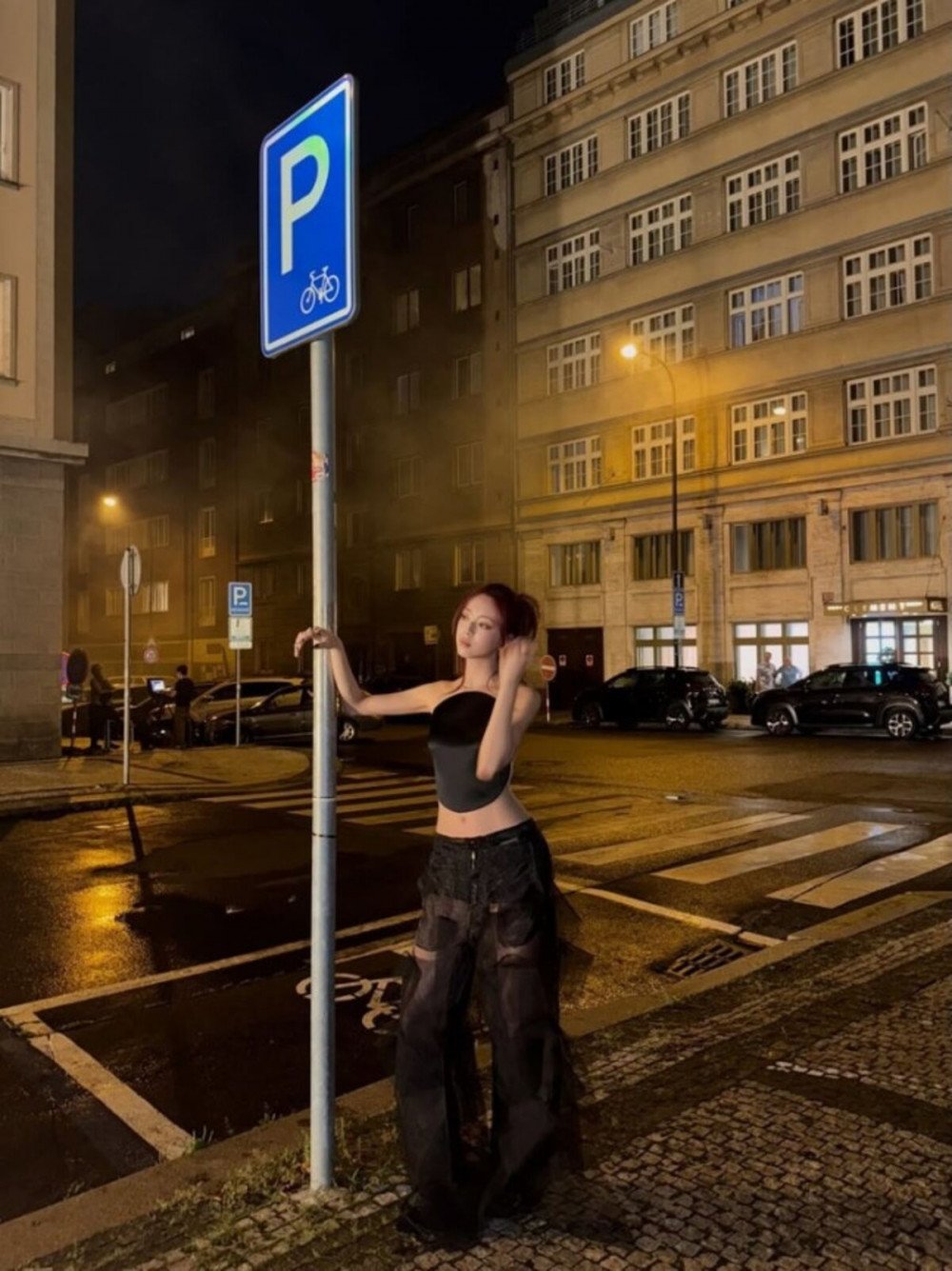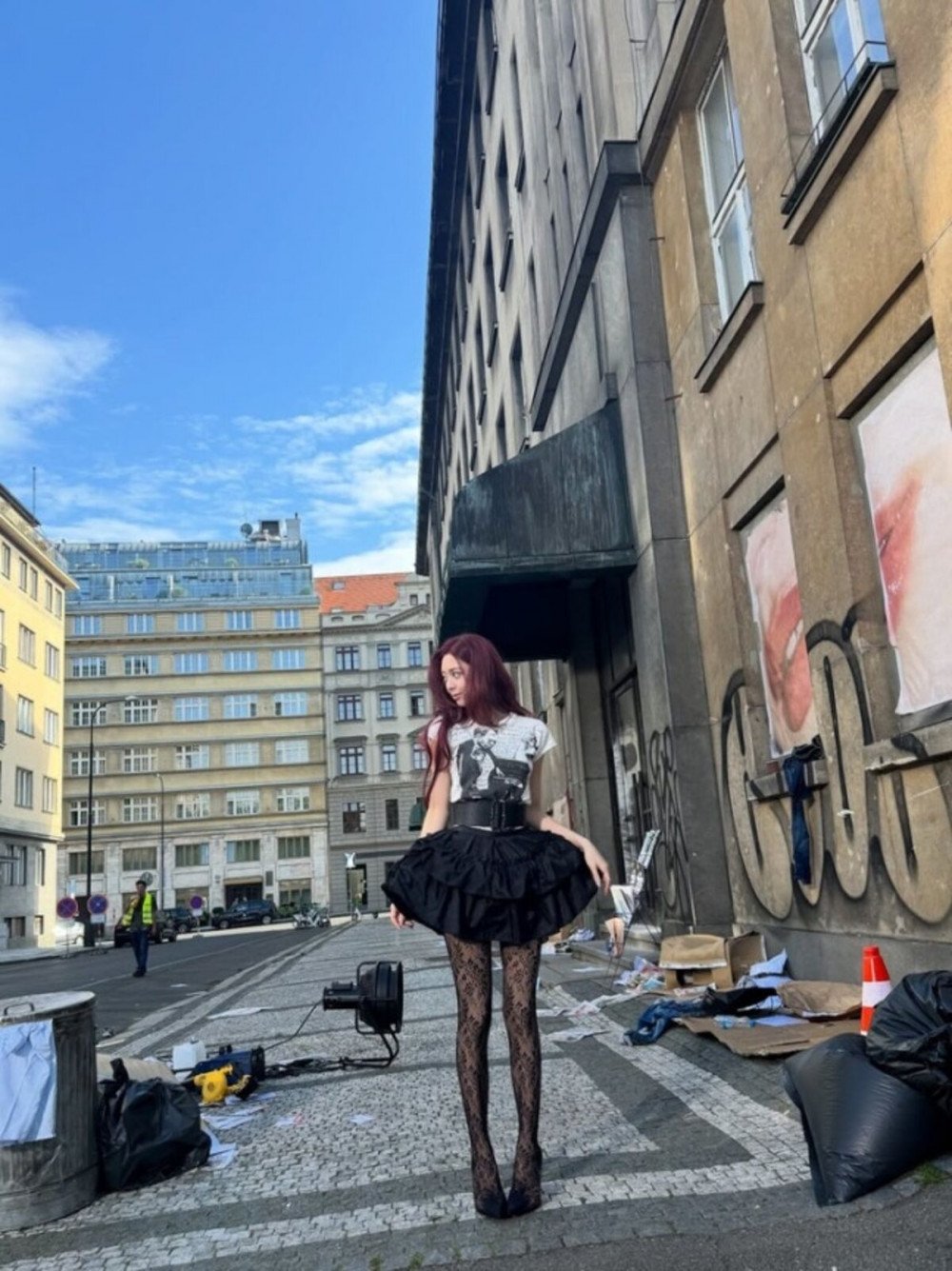 在隨後公開的戶外拍攝照中,Yuna 以蕾絲花紋絲襪搭配荷葉邊短裙完成獨特輪廓,即使是低角度拍攝也依然突出的搶眼身材與偶像氣場令人讚嘆。夜間街拍則營造出別樣氛圍,從馬路上擺拍時的 funky 感覺,到都市背景前宛如電影畫面的場景,皆留下深刻印象。