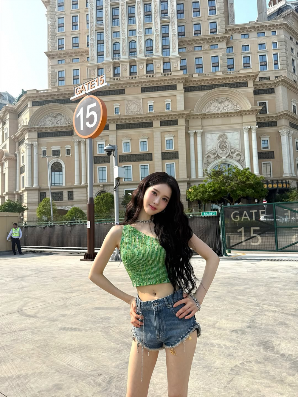 11月15日,Sieun上傳了一系列在澳門拍攝的照片,她與STAYC成員們近日剛在當地參與Waterbomb音樂節演出。以「WATERBOMB BOMB BOMB💚💚」為標題的貼文中,Sieun展示了迷人的波浪長髮、清新淡雅的妝容與緊實身材。