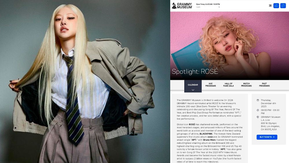 正因如此,Rosé已確認將於12月4日在美國洛杉磯格林美博物館演出。這場名為《焦點:Rosé》的活動將以更親密形式慶祝她的個人出道,並深入對談她的職業生涯,特別聚焦於近期個人發展與全球影響力。活動還將包含特別現場演出,讓Rosé能透過此權威平台與樂迷直接交流。