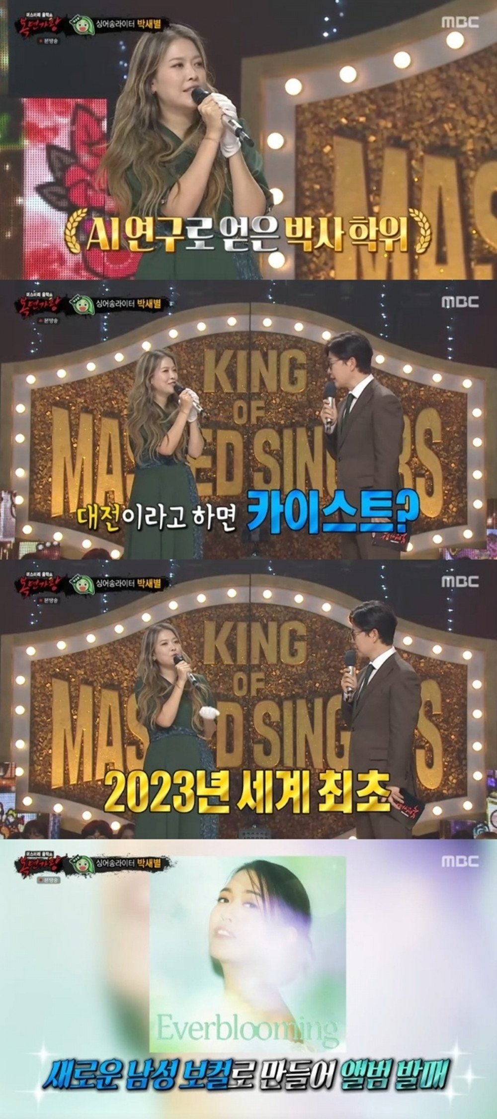 摘下面具後,她不愧被譽為歌壇「學霸代表」,透露:「我在大田(KAIST所在地)攻讀數理科約10年,其實取得了工科人工智慧博士學位。」當主持人確認是否指頂尖學府KAIST時,她肯定答覆令全場驚嘆。