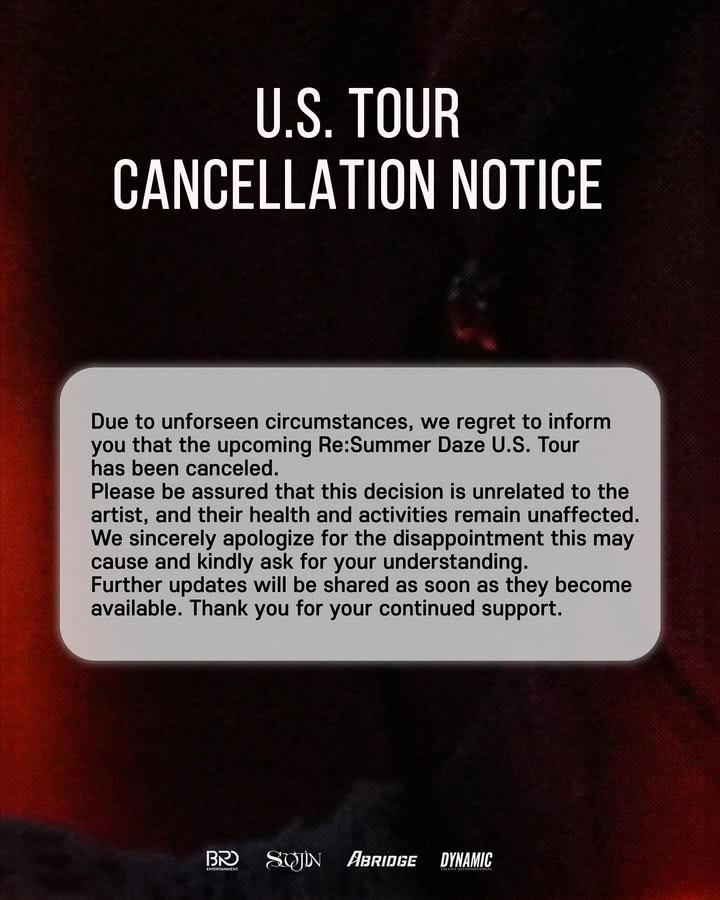 這系列取消潮始於2024年10月,當時Soojin的北美巡演《Summer Daze》突然全面中止。在取消當下連票價與場次都尚未公布,其所屬公司僅以「不可抗力因素」解釋巡演取消原因。