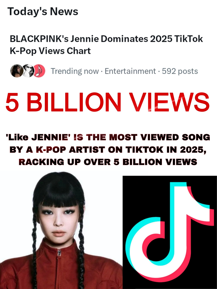 如今,她標誌性且具突破性的作品《Like JENNIE》再創驚人里程碑,成為「2025年TikTok上觀看次數最高的Kpop歌曲,累積超過50億次觀看」。