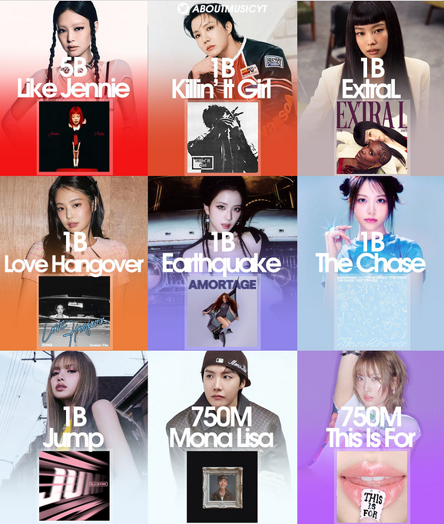 據統計數據顯示,JENNIE這首熱門單曲因在舞蹈挑戰、時尚剪輯與演唱會片段中被廣泛使用,以壓倒性優勢成為本年度TikTok最常被使用的K-pop背景音樂。同時,她的作品《Extral》與《Love Hangover》亦各自累積逾10億次觀看,並列今年TikTok觀看量第二高的K-pop歌曲,與全球熱門曲目——BLACKPINK的《Jump》及JISOO《Earthquake》持平。此並列情況亦出現於其他公司作品,包括J-Hope與GloRilla合作的《Killin' It Girl》以及Hearts2Hearts《The Chase》。