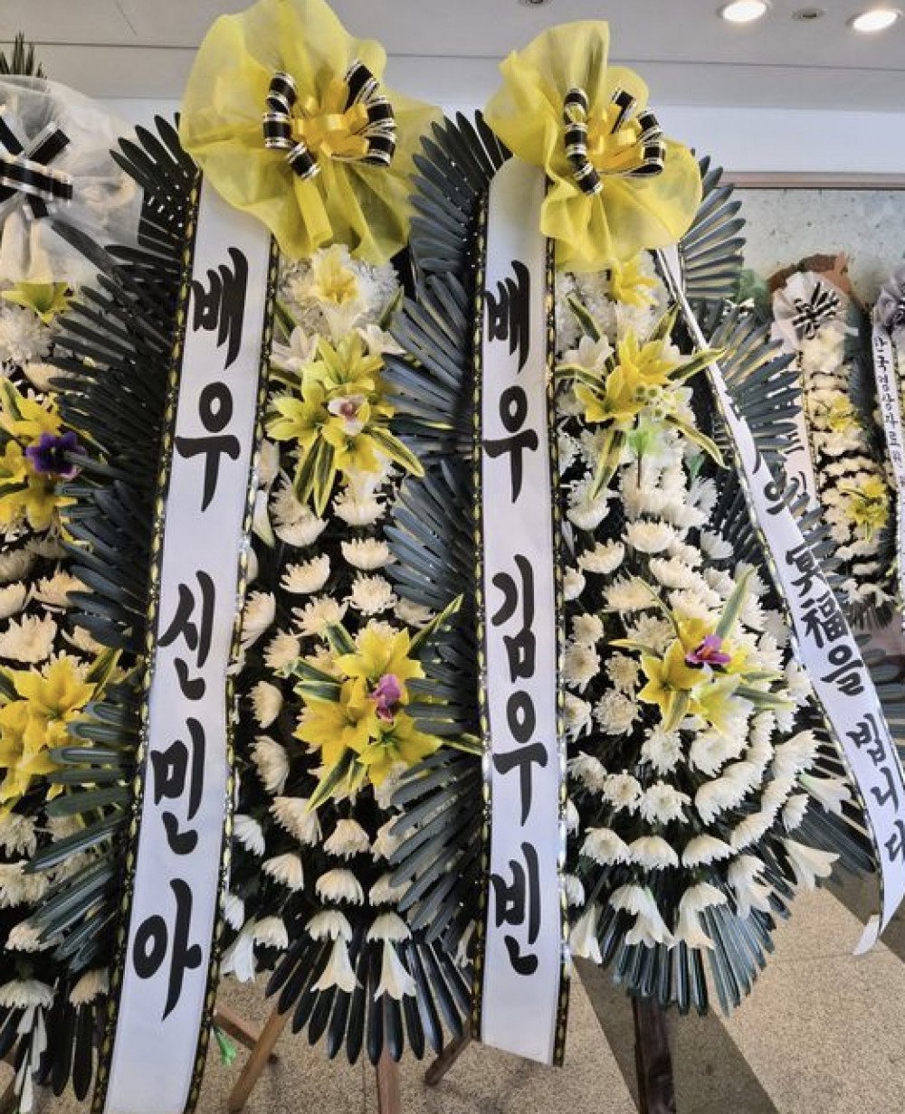隨著演藝圈同僚與後輩致贈的悼念花圈陸續送達,金宇彬與申敏兒致贈的花圈尤其引人注目。據業內人士透露,署名「演員金宇彬」與「演員申敏兒」的花圈並排陳列於靈堂,象徵兩人對這位備受敬重前輩的共同追思。