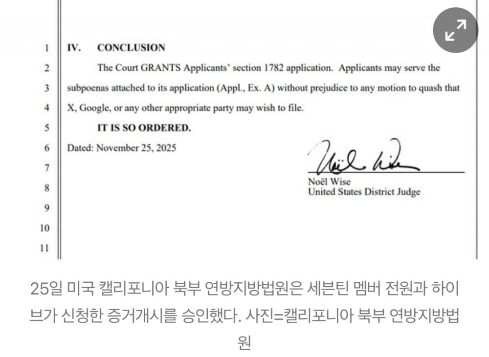 隨著北加州法院的命令頒布,HYBE Labels將能獲取該SNS用戶的姓名、註冊日期、出生日期、電子郵件、SNS使用紀錄、住址等資訊。X與Google須於約45天內提交HYBE所要求的資料。
