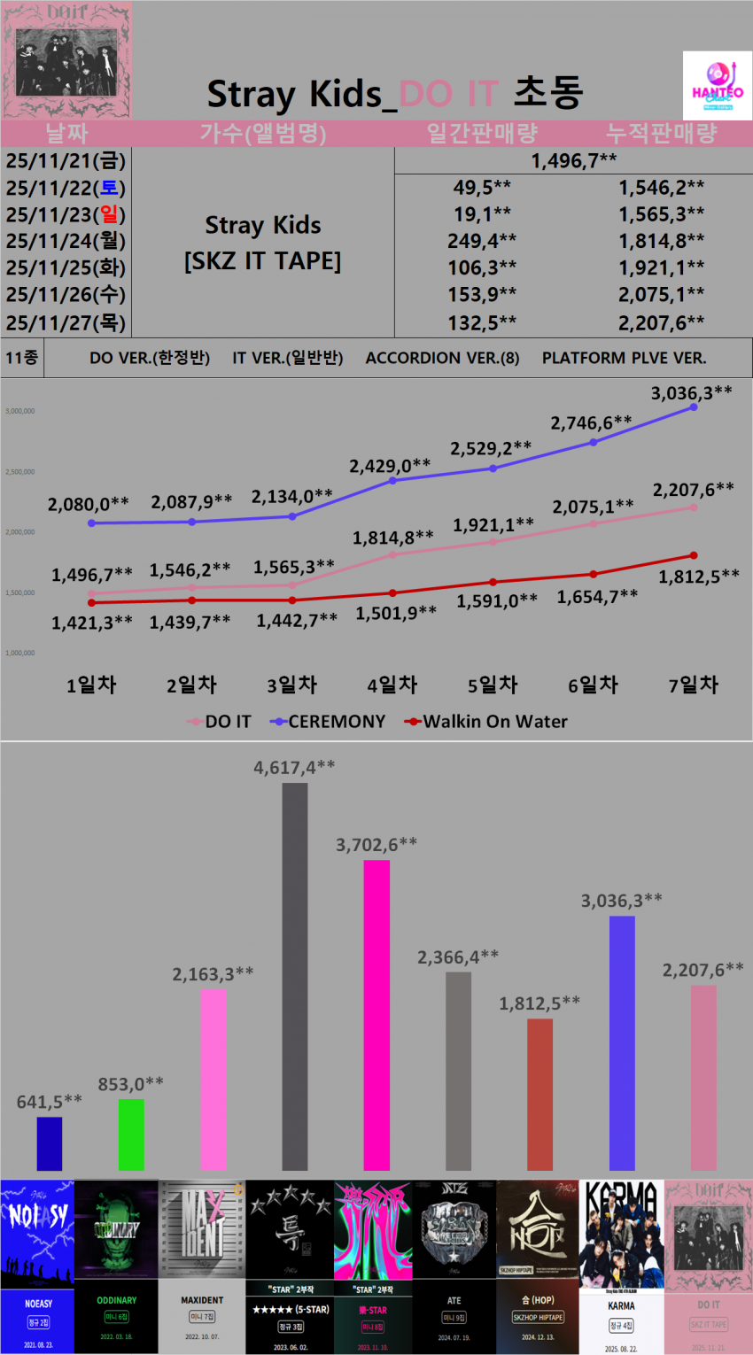 《Do It》於上週11月21日(韓國時間)發行,首日即引爆銷售熱潮,截至11月22日(韓國時間)已突破149萬張。最新數據顯示,截至11月28日(韓國時間),這張特別專輯的首週銷量已達2,207,660張,繼8月發行的《Karma》後,再度為Stray Kids奪得今年第二張「雙百萬銷量」認證。