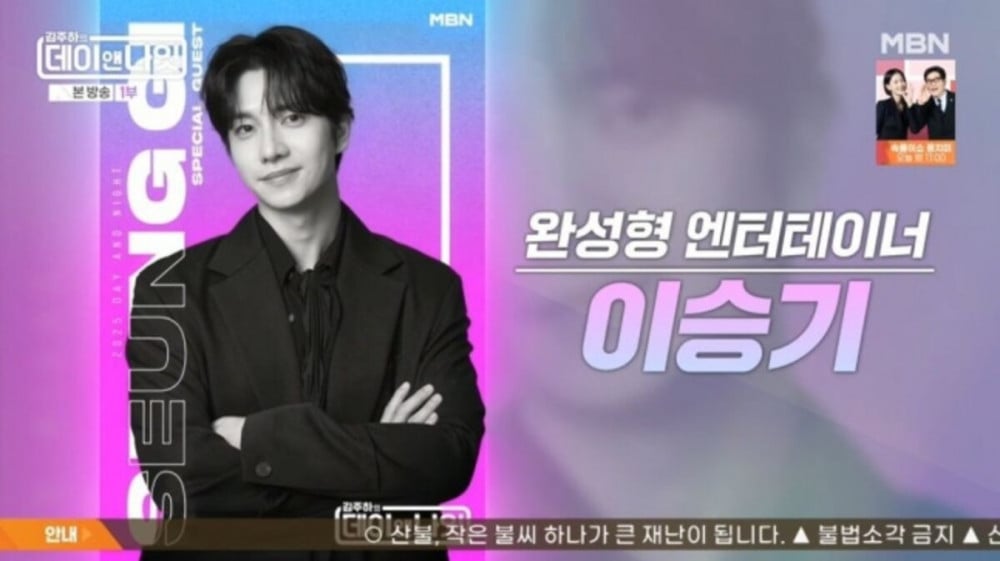 11月29日晚間,MBN《金九拉的日與夜》邀請演員兼歌手的李昇基擔任嘉賓。首次出演MBN節目的李昇基被問及對主持群金九拉、文世允與ZO ZAZZ的感想時打趣道:「沒有比這更混雜的燉菜了,像是神仙爐混搭部隊鍋。自從《夜心萬萬》後,我一直在思考真正的脫口秀該是什麼模樣,最好奇的是三位的化學反應,今天只想在這裡玩得盡興。」